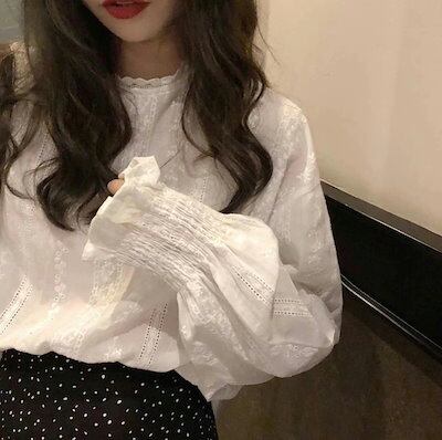 ブラウス レディース 春 春秋 夏シャツ バルーンスリーブ 白 ホワイト レース 長袖 大人 オフィス 通勤 トップス 20代 30代 40代 ママ 母 OL