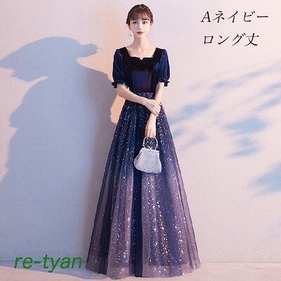 ロングドレス 演奏会 袖付き キラキラ 半袖成人式同窓会卒業式大人 ピアノ 発表会ドレス Aライン結