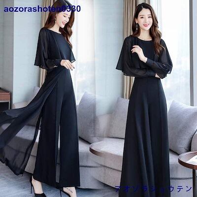 20色【【品質改良型&新色追加】国内即納 パンツドレス 結婚式 お呼ばれドレス 黒 韓国 パーティードレス セットアップ フォーマル シフォン ワイドパンツ 上品 大きいサイズ 3l