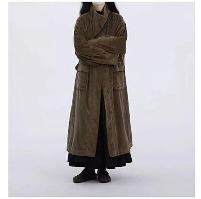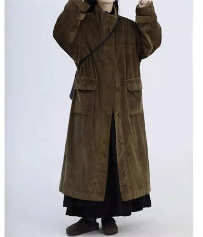 ロングコート コーデュロイ チェスターコート レディース 秋冬 立ち襟 コート アウター コーデュロイ コート 大きいサイズ ロング ブルゾン 羽織り ポケット 森ガール エスニック ナチュラル ゆっ