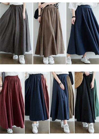 スカート フレアスカート サーキュラースカート ロングスカート レディース 秋 冬 マキシ丈 ギャザースカート ウエストゴム 柔らか ゆったり 体型カバー カジュアル ナチュラル 森ガール 大人可愛い