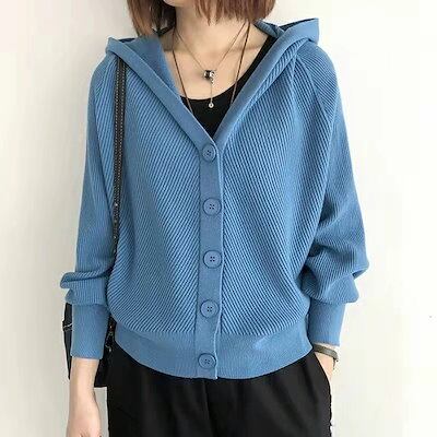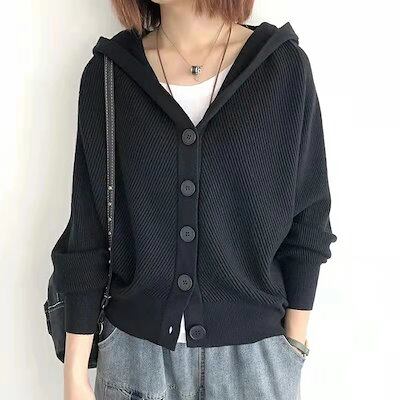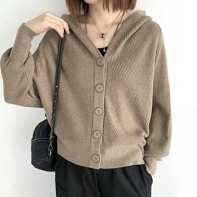 ニットカーディガン カーディガン 春秋 ニットカーディガン ニット パーカー ニットパーカー ゆるカーディガン 羽織り アウター Vネック フード付きパーカー ドルマンスリーブ 大人カジュアル 大人可