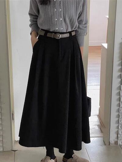 スカート 秋冬 レディース ロングスカート 黒 コーデュロイ ボトムス ロング スカート ミモレ丈 コーデュロイ フレアスカート Aライン スカート ウエストゴム ハイウエスト 通勤 仕事 オフィス