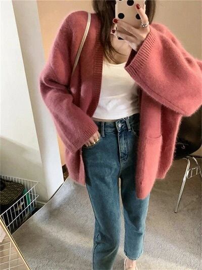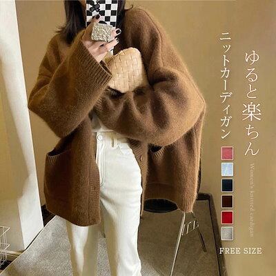 ニットカーディガン レディース 春秋 ニット アウター 大きいサイズ ゆったり 前開き カーディガン トップス ゆるカーデ 羽織 もこもこ 暖か 厚手 ふわふわ キレイめ ゆったり カジュアル
