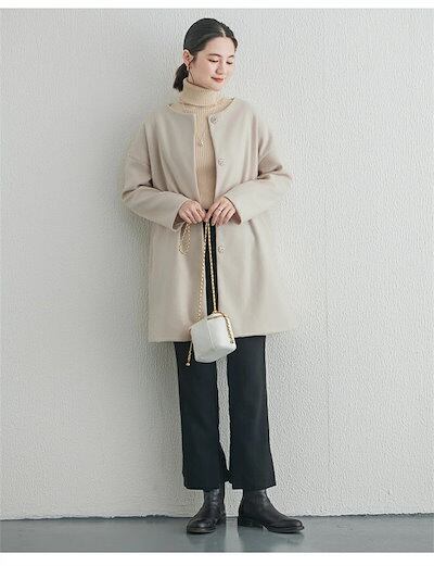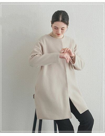 コート ノーカラー 秋 冬 レディース ツイード風コート ジャケット アウター 大きいサイズ ゆったり トップス 羽織 ノーカラーコード カジュアル 厚手 大人 通勤 キレイめ 事務所 OL オフィス