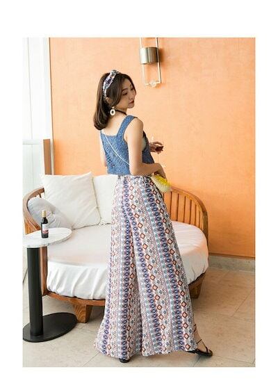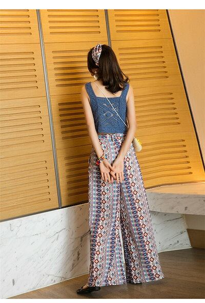 エスニック風 ワイドパンツ レディース 夏 涼しい フレアパンツ シフォンパンツ フレアパンツ ロングパンツ ゆったり パンツ ガウチョ リラックスパンツ ウエストゴム おしゃれ 夏 可愛い大人 オシ