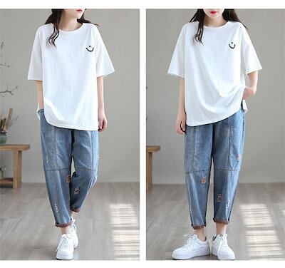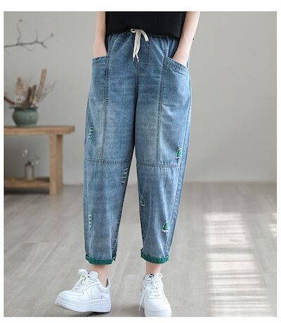デニムパンツ 春 レディース テーパードパンツ ワイド ボトムス チノパン ジーパン ロールアップ 森ガール 春 無地 ズボン ウエストゴム 大きいサイズ 柔らかい ゆったり 体型カバー 薄手 オシャ