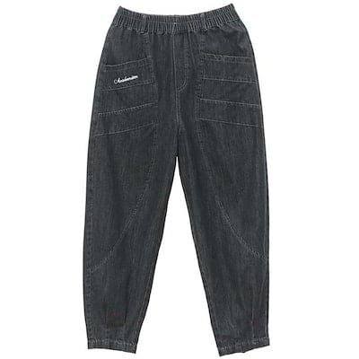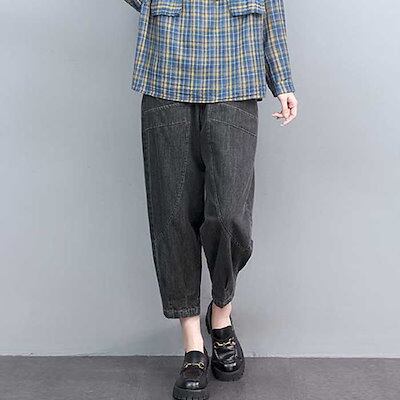 デニムパンツ テーパードパンツ レディース ワイド ボトムス ジーンズ 森ガール アンクルパンツ 無地 ズボン ウエストゴム 大きいサイズ デニム ゆったり 体型カバー 薄手 きれいめ アンクル丈 オ