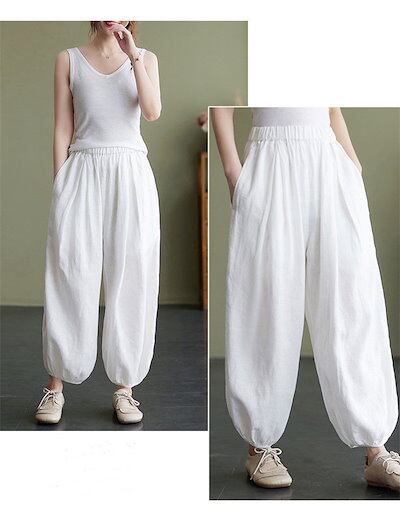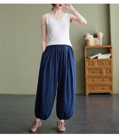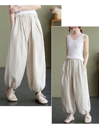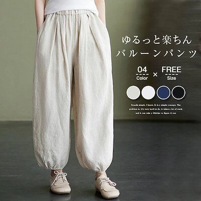 バルーンパンツ 綿麻風 ワイドパンツ レディース 夏 コクーンパンツ リネン コットン 大人カジュアル ガウチョパンツ ナチュラル 森ガール ズボン ボトムス ウエストゴム 大きいサイズ ゆったり 体