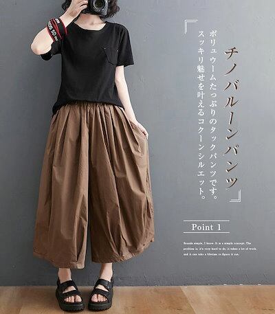 ワイドパンツ レディース バルーンパンツ コクーンパンツ チノパン 大きいサイズ ゆったり 夏 春 秋 ナチュラル 森ガール ズボン ボトムス 体型カバー プリーツ 着?せ フリーサイズ 薄手 オシャ