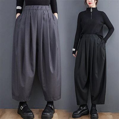 タックワイドパンツ レディース ボトムス 春 パンツ コクーンパンツ ワイドパンツ ウエストゴム 秋冬 ゆったり バギー チノパン 大きいサイズ ズボン カジュアル 通勤 仕事 オフィス 事務所 OL