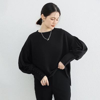 ラウンドネックスウェット新色無地スウェットシャツ女性デザインスプリットシンプルランタンスリーブラウンドネックトップス