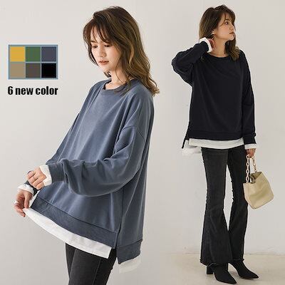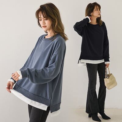 ラウンドネックスウェット2024 初秋新作 偽物 ツーピース 長袖 丸首 スウェット ゆったり 大きいサイズ トップス