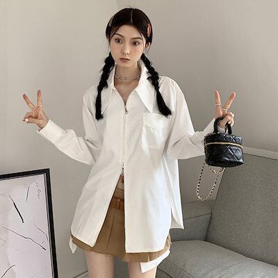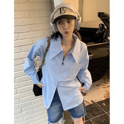 今っぽシアーシャツ POLO襟長袖薄手ルーズシャツ女性サンシャツ女性