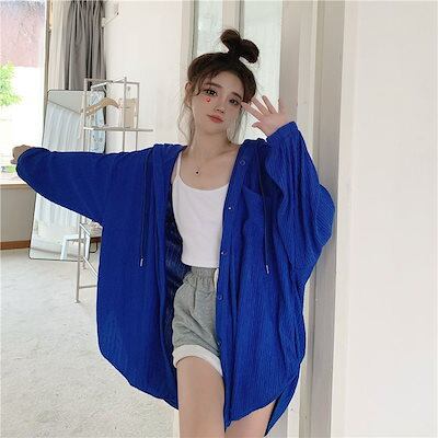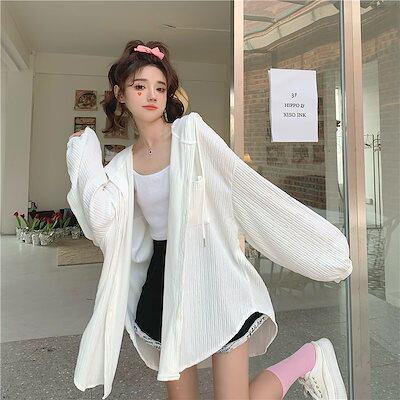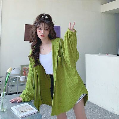 今っぽシアーシャツ 夏の新しい通気性日焼け止めトップス女性フード付きミディアムレングス長袖カーディガンカジュアル薄いセクション緩いシャツ