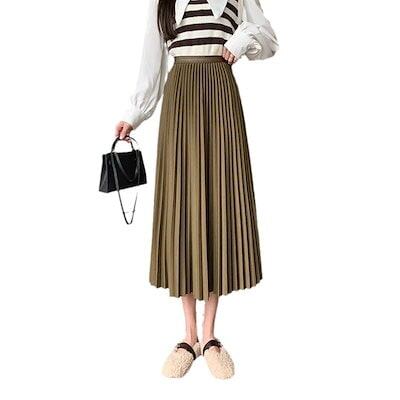 プリーツスカート2024新セクションミディアムレングスハイウエスト細身半身スカート女性ラインスカート