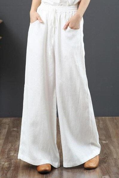 ワイドパンツ コットンリネン レディースパンツ ゆったり 大きいサイズ ワイドパンツ ハイウエストパンツ ストレートリネンパンツ