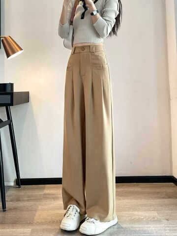 ワイドパンツ 2024新ルーズ細いストレートパンツ女性パンツハイウエストドレープカジュアルスーツワイドパンツ