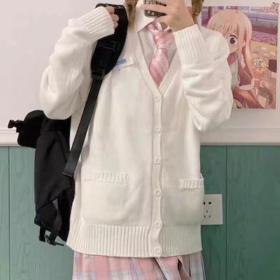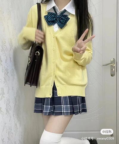 カーディガン JKユニフォームVネックニットカーディガンジャンパーレディースカレッジスタイル無地薄手ジャケット万能長袖トップス