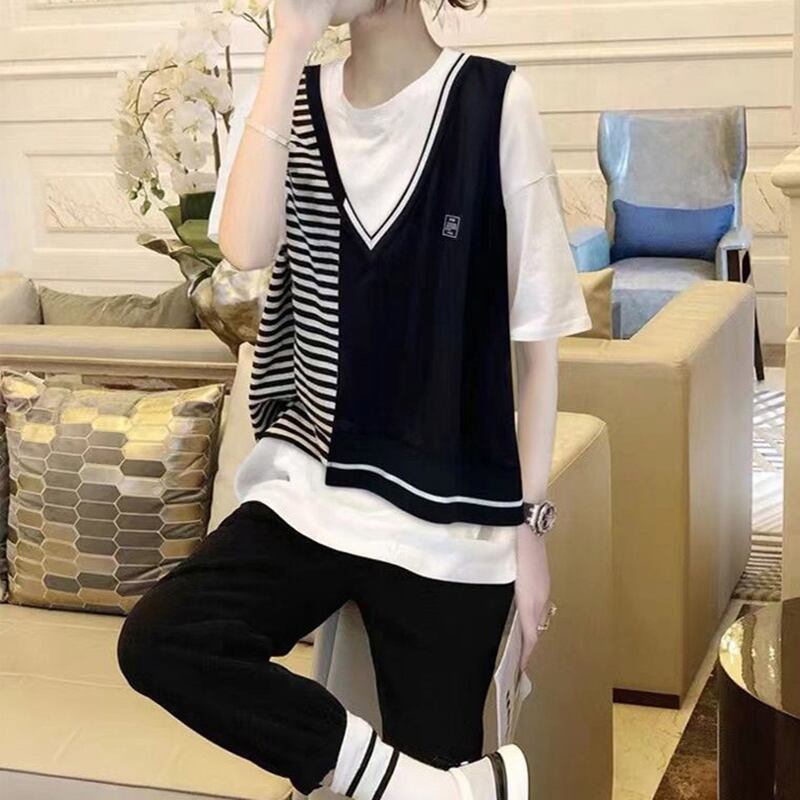 初回送料無料 春夏新作レディースファッション カジュアル 着?せ フェイク2枚 人気 トップス