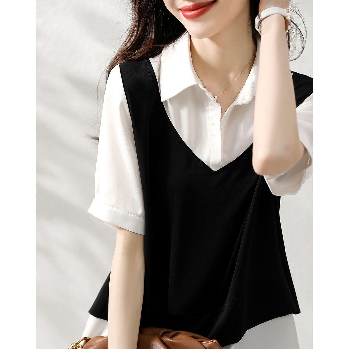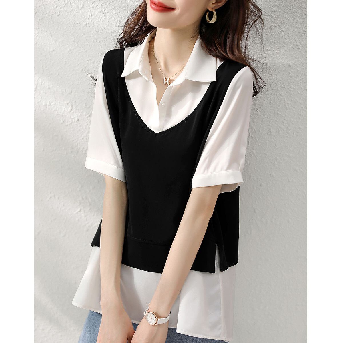 初回送料無料 春夏新作レディースファッション カジュアル フェイク2枚 シャツ 半袖 トップス