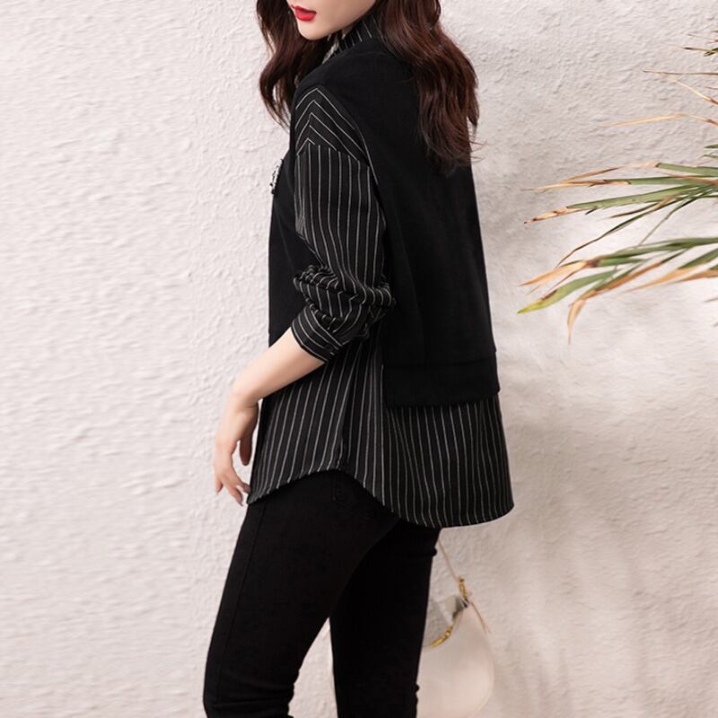初回送料無料 春夏新作レディースファッション カジュアル フェイク2枚 シャツ 長袖 トップス