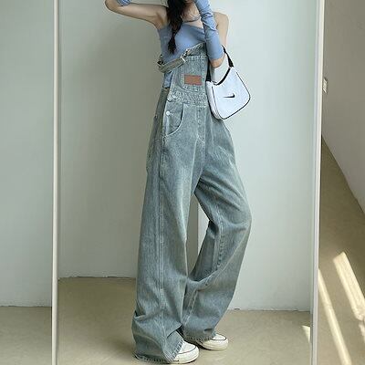 新款 レトロ デニム サロペット 春夏 ゆったり ワイドパンツ レディース オーバーオール ロングパンツ 流行り