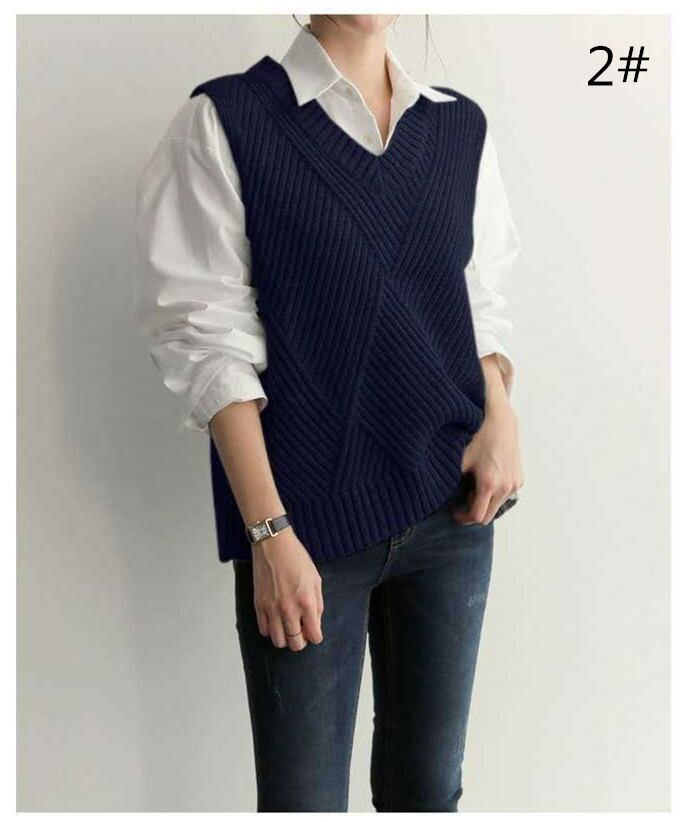 2021秋冬新作 ニットベスト トップス Vネック重ね着 レディース 体型カバー シンプル