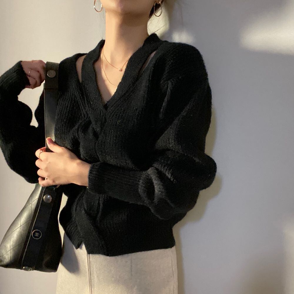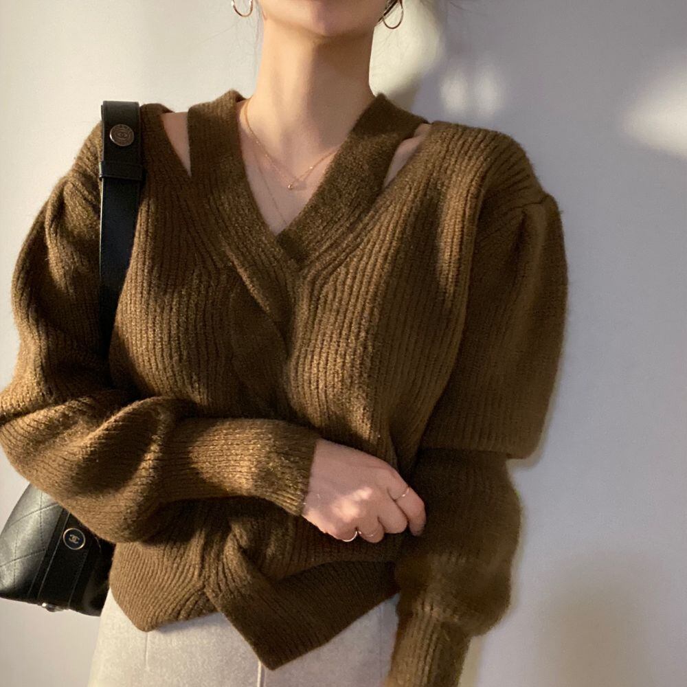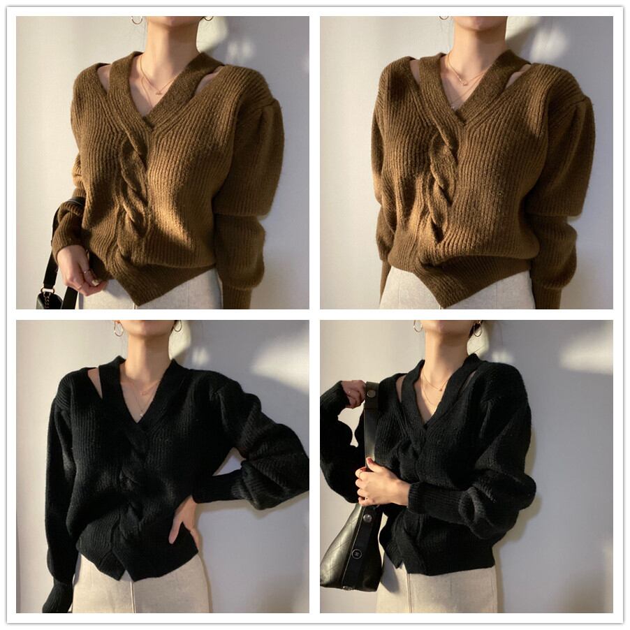 2021秋冬新作 セーター 混紡ニット Vネック トップス 韓国風 レディース 大人可愛い