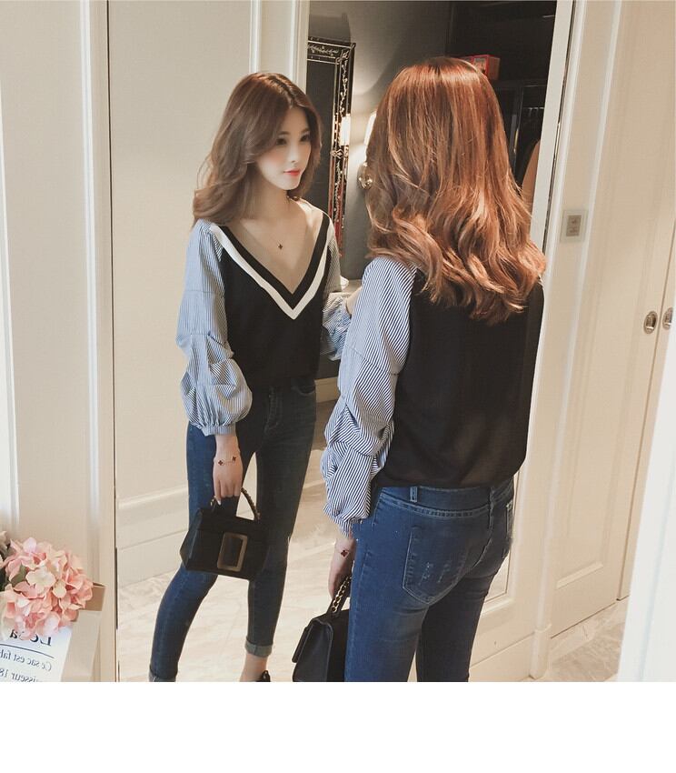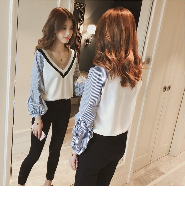 秋冬新作 ブラウス 人気シャツ Vネックブラウス レディーストップス パフスリーブ 痩せ見え ファッション