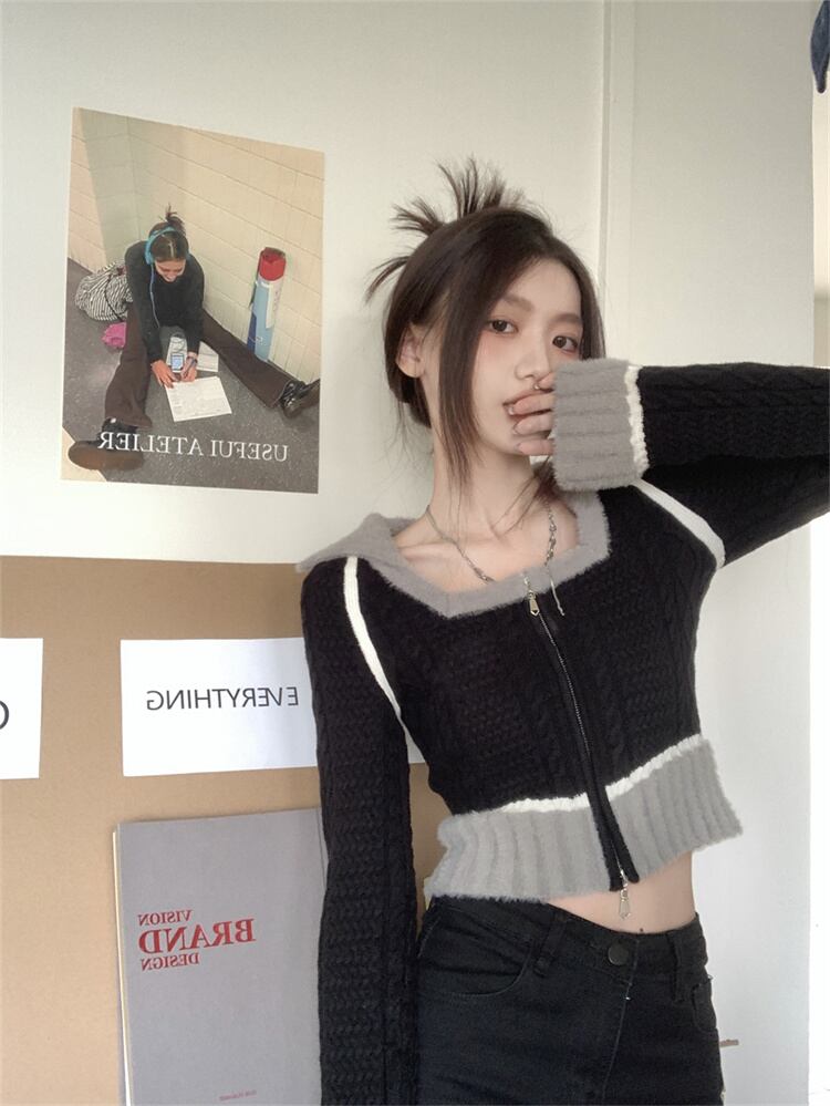 超目玉冬物登場!スクエアネック 独特 レディース カーディガン 冬 短いスタイル ニットトップス