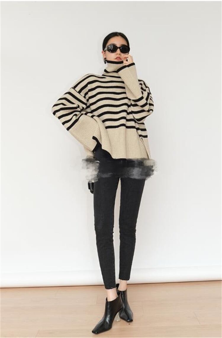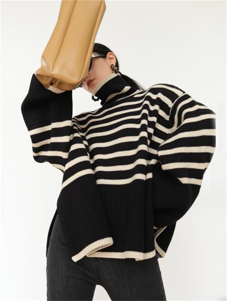 冬コーデに欠かせない ボーダー セーター 長袖 スリム ゆったりする ニットトップス デザインセンス