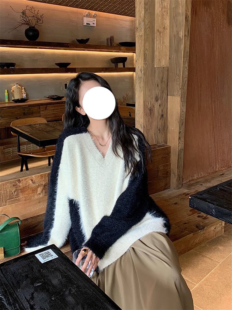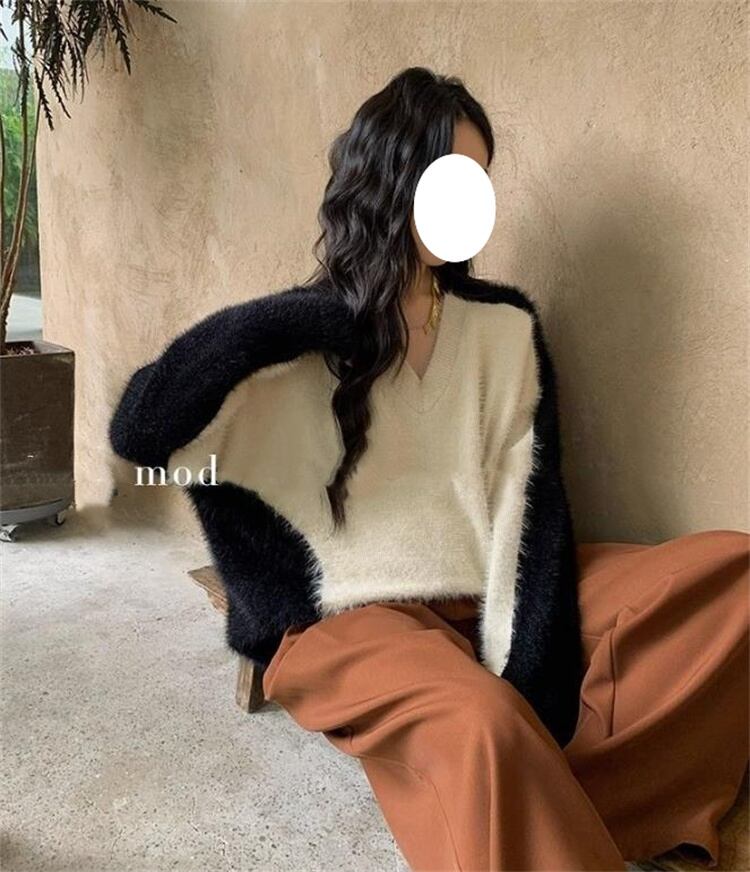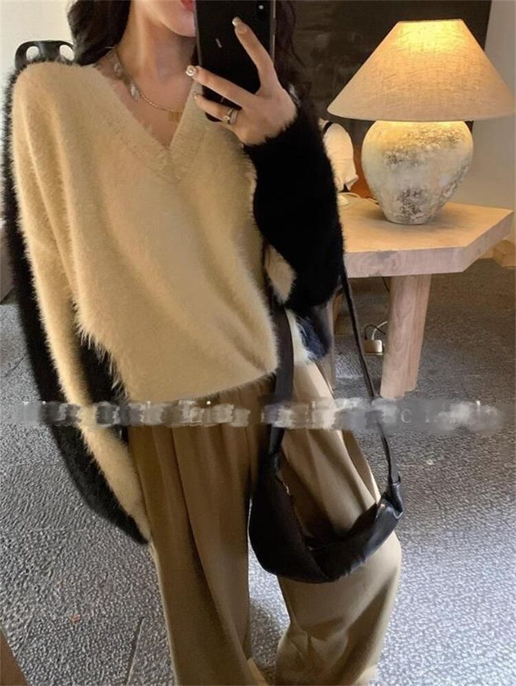 今冬必ず買うデザイン vネック トップス セーター 長袖 ニットトップス 大人気 ゆったりする 怠惰な風