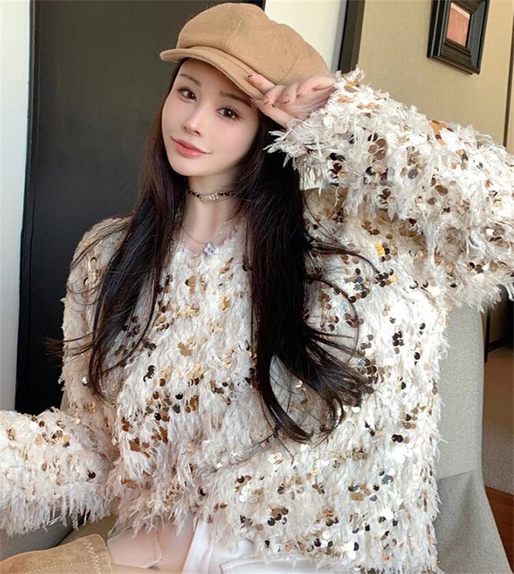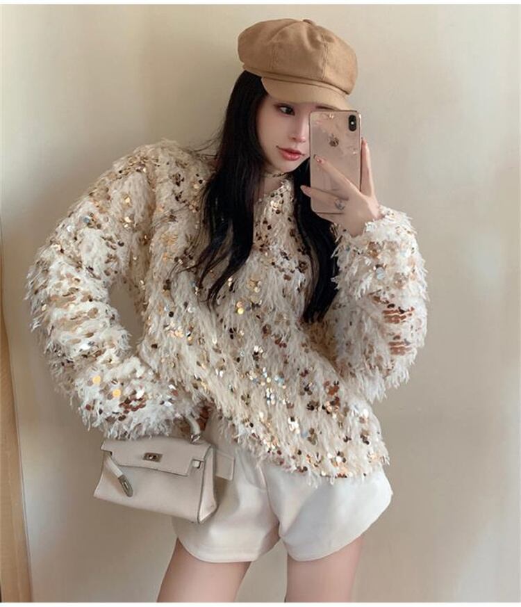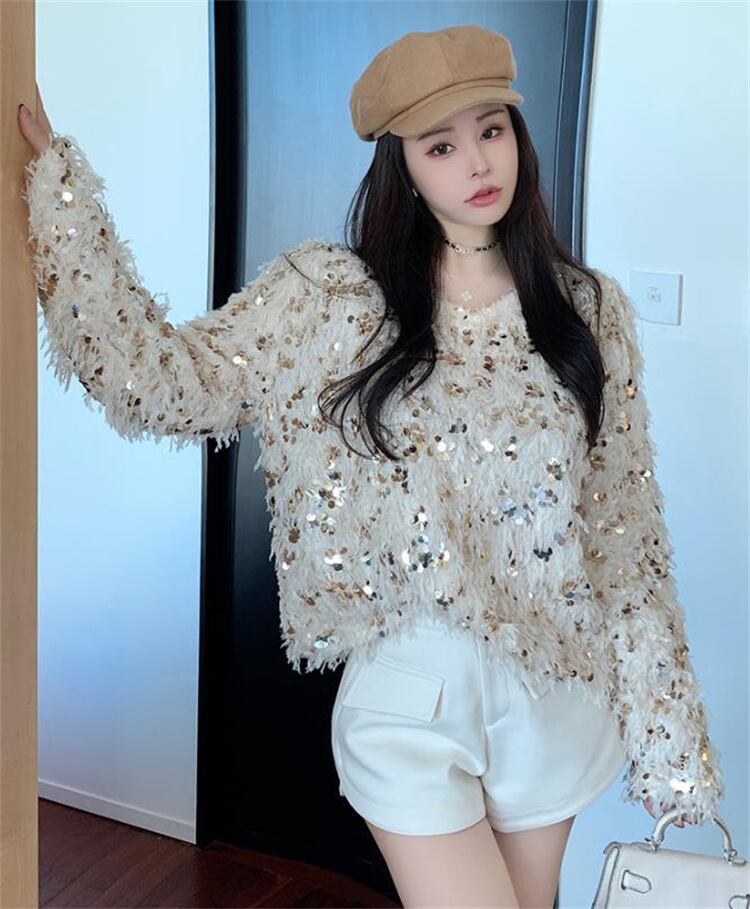 年末年始特別プライス vネック 羽毛 セーター 秋冬2023 新作 ゆったりする 洗練された スパンコール