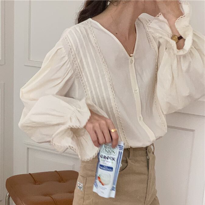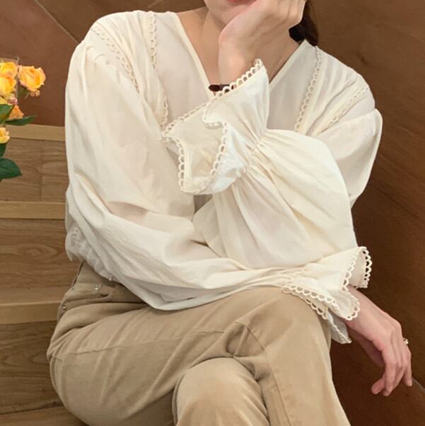 韓国風 ブラウス トップス レディース 人気シャツ 長袖 2024年秋冬新作 Sweet系 Vネック