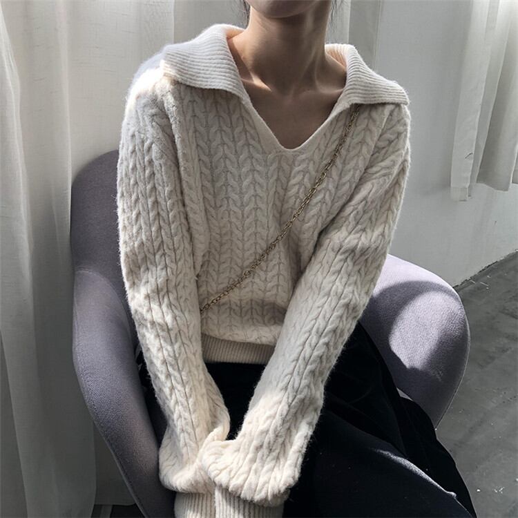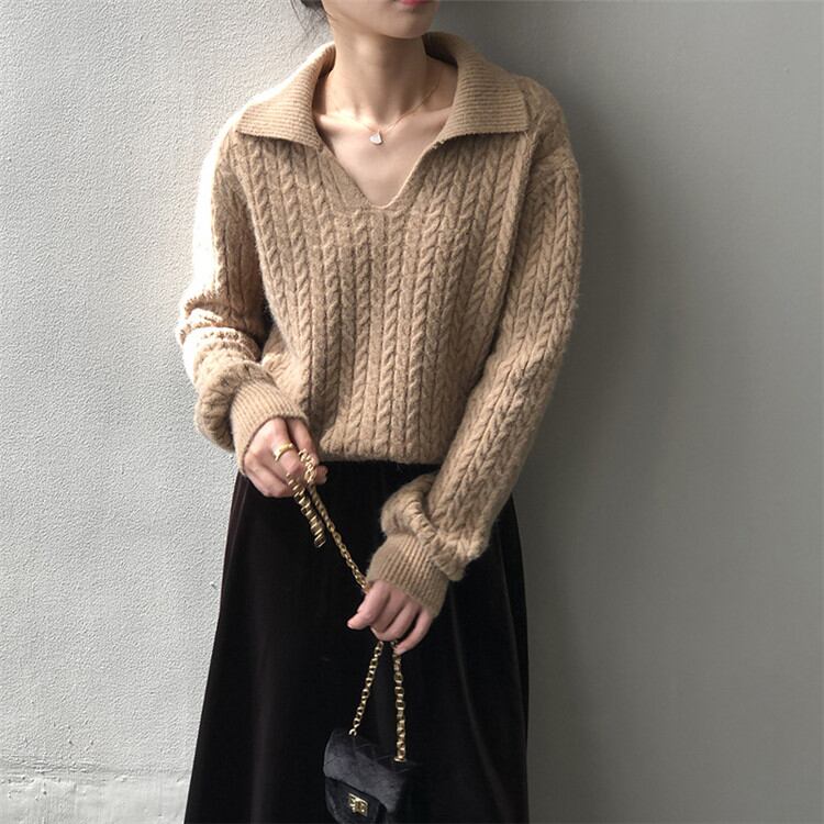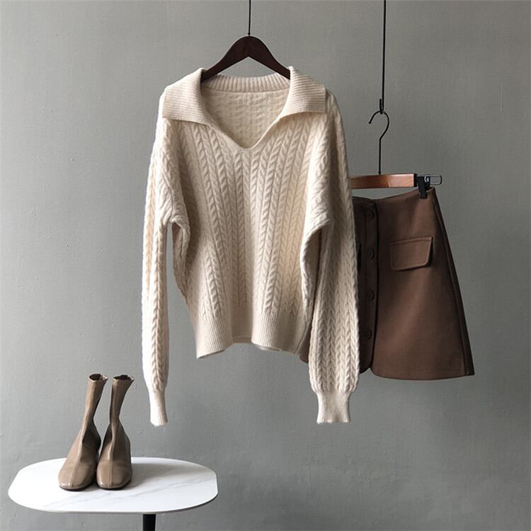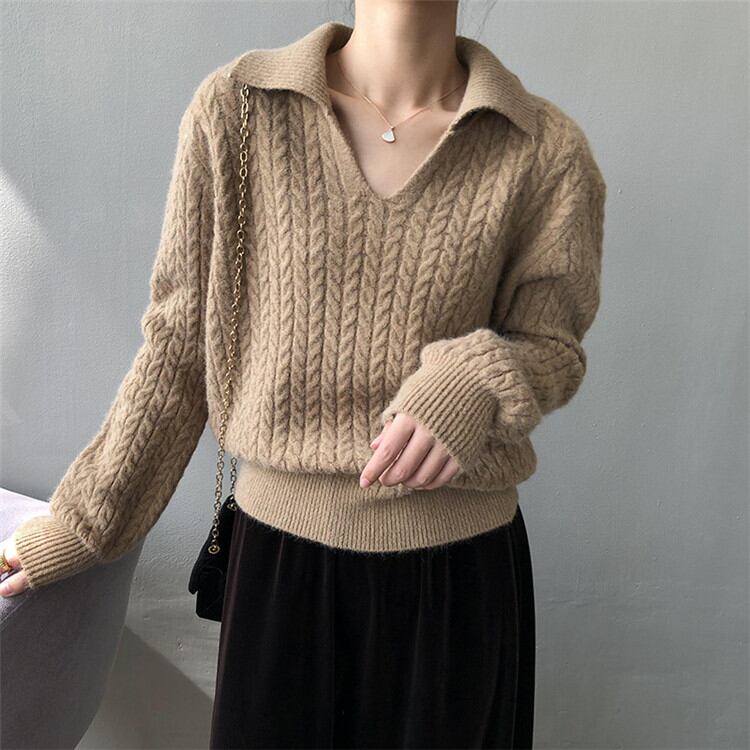 季節の単品 ラペル セーター レディース 2021秋 冬 Vネック ゆったりする 怠惰な風 ニット