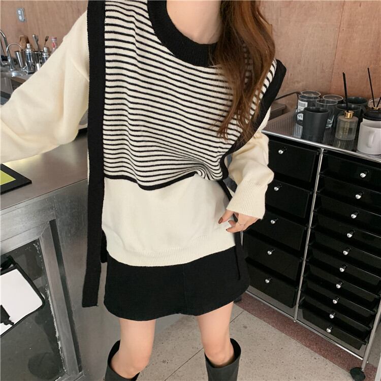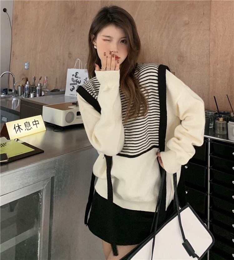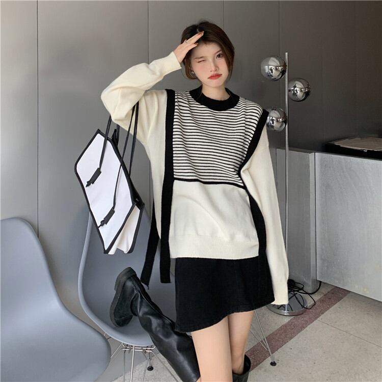秋冬の服にちょうど良い デザインセンス フェイク2ピース ニット トップス レディース 秋