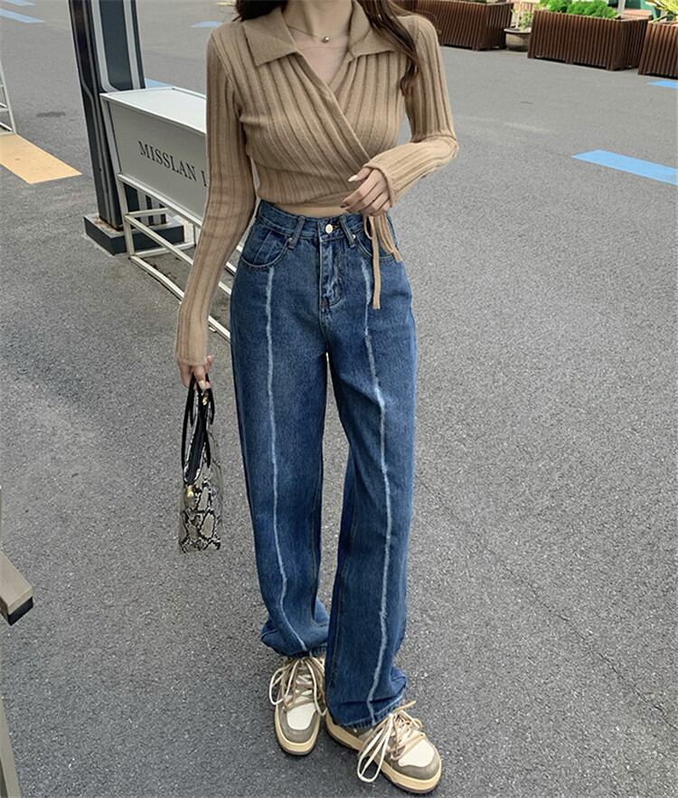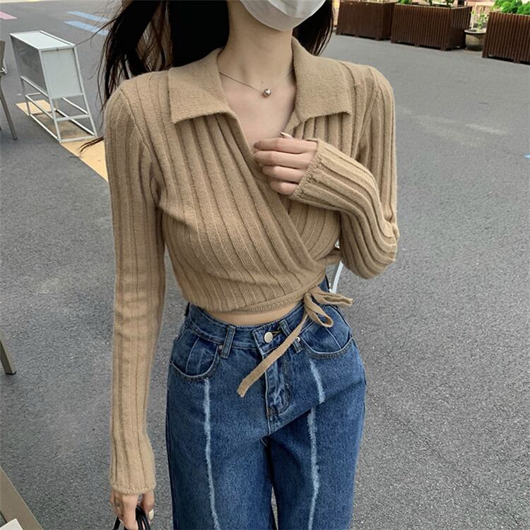 ニット 長袖 セーター 秋冬 Vネック バンディング トップス レディース