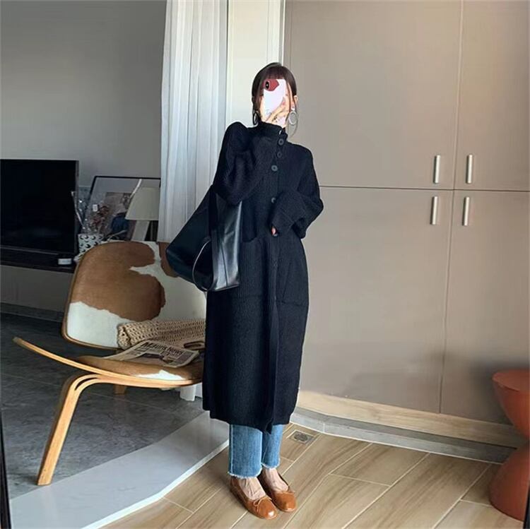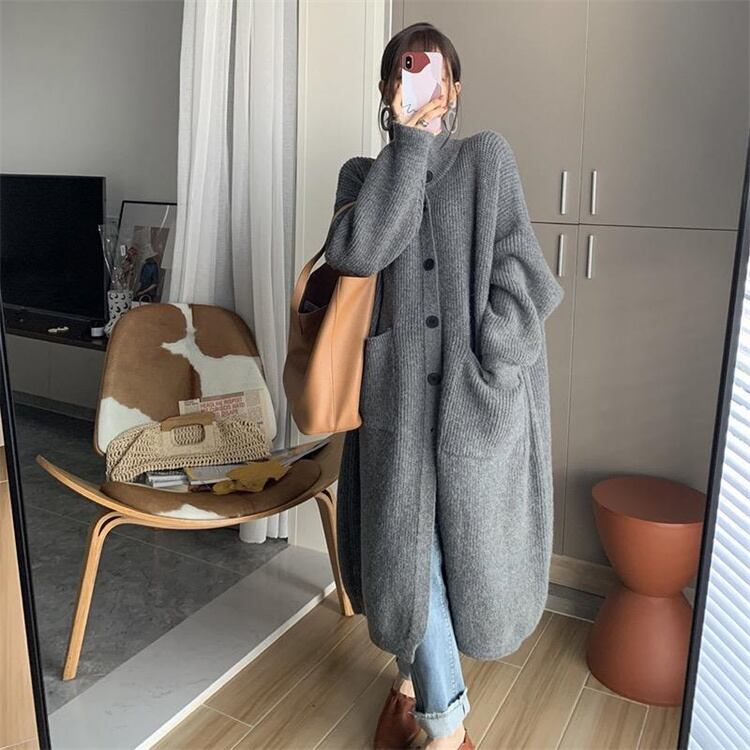 着痩せして見えます コート 厚手 2023秋冬 けだるい風 気質 ニットの上着 カーディガン 中丈コート
