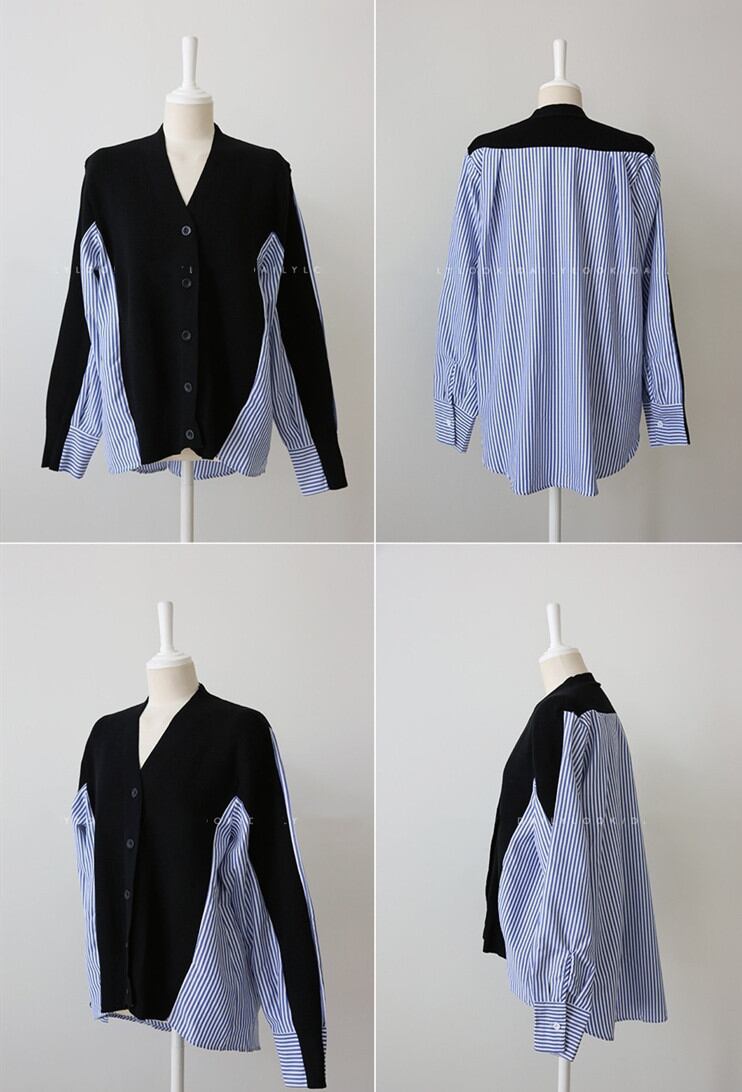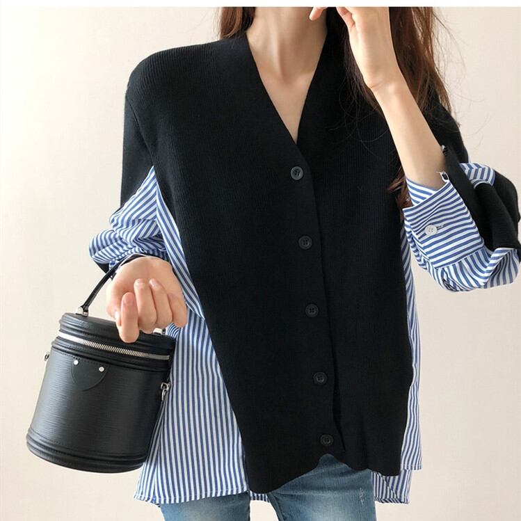 2021秋冬新作 カーディガン ニットトップス 長袖 異素材 重ね着風 レディース おしゃれ