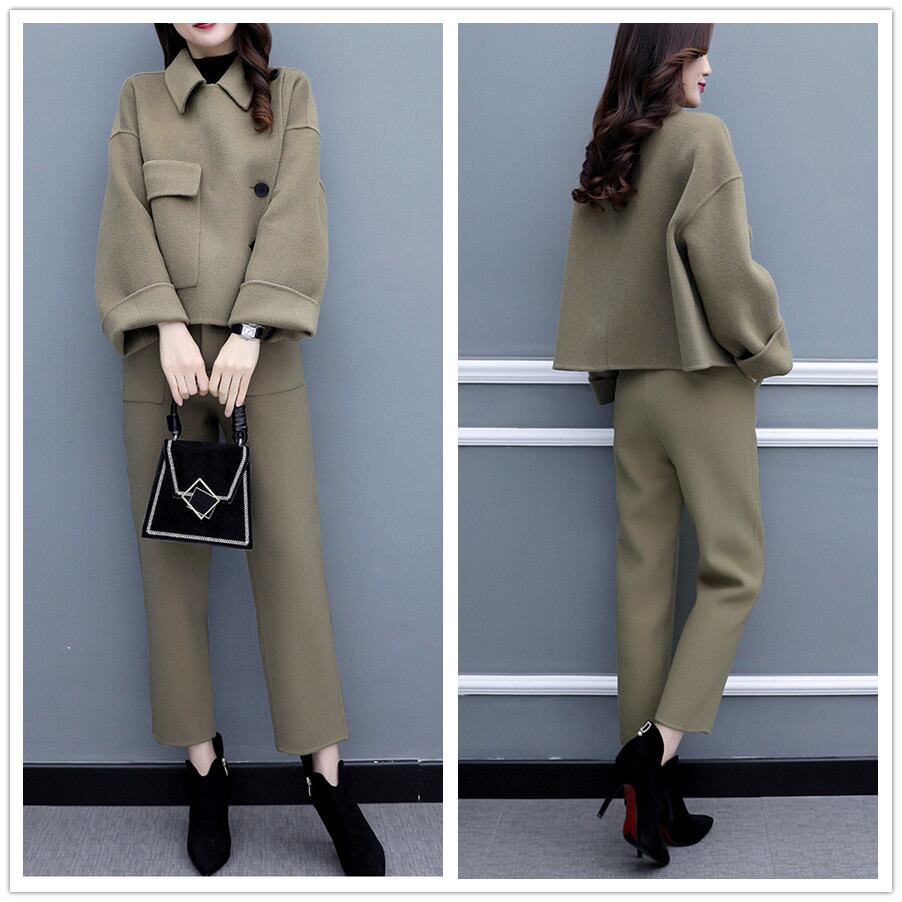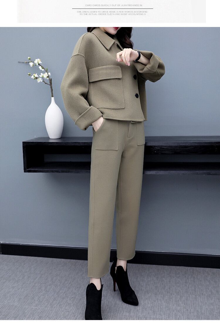 2021秋冬新作 ラシャコート 9分丈パンツ ラシャ セットアップ 韓国風 レディース カジュアル