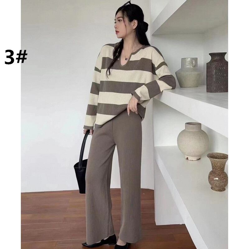 2024年秋冬新作 プルオーバー ニットトップス トップス Vネック レディース パンツ 上下セット