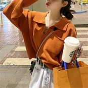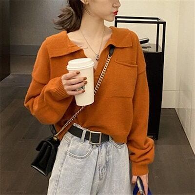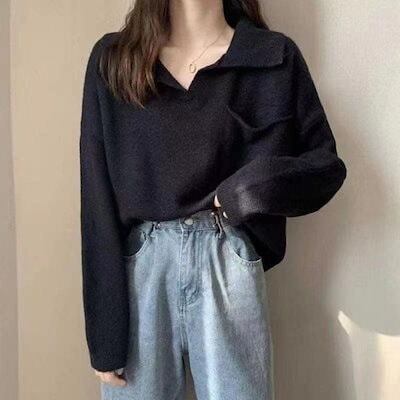 人気なリブニット ベーシックニット ふわふわセーターレディース秋冬2024新作ゆったりショート丈長袖デザイン感開襟Vネックニットレディース