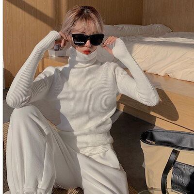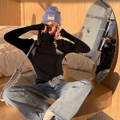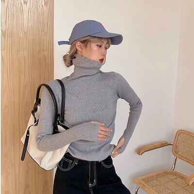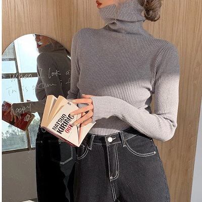 人気なリブニット 期?限定【2枚購入で 3oo円OFF!】秋冬韓国ファッション カシミヤタッチニットカーディガンハイネックセーター レディーストップスリブインナー長袖 百掛け快適 柔らかい お肌に優し