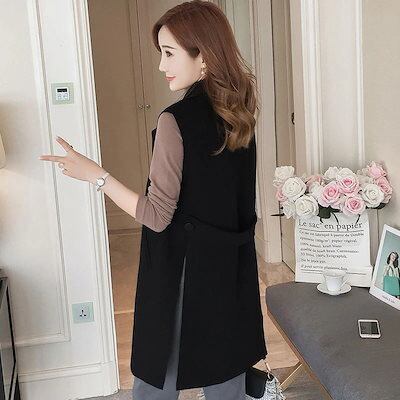冬アウター ノースリーブ ベスト ジャケット韓国ファッション レディース 通勤 タンクトップ ベストレディース アウターVネック スーツ ベスト 秋 ジャケット