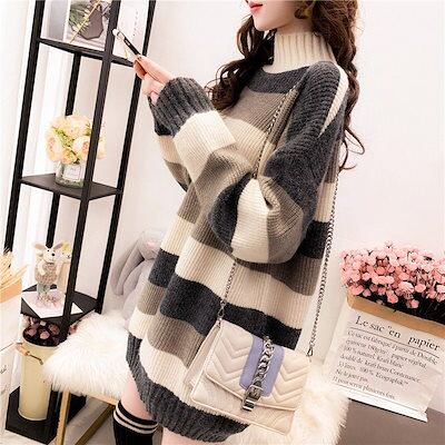 人気なリブニット 裏起毛ファッション 秋冬 大人気セーター!セミロングニット トップス 厚手カシミヤタッチ ニットセーター レディース着痩せタートルネックニット 怠惰な風 ベーシックニット
