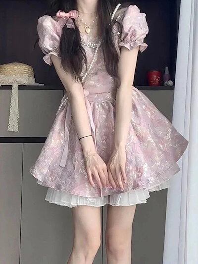 今年人気爆発中ロリータ 二次元 学院祭用 人气 新作コスプレ フランス 気質 甘い ピンク ワンピース レディース 腰をすぼめる やせて見える 角領 ポンポンスカート 花嫁 茶会