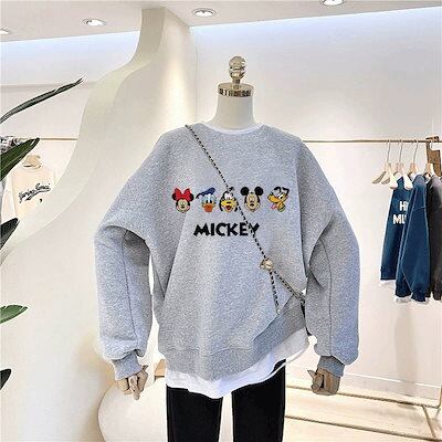 ディズニーミッキー ペアルックパーカー/レディースパーカー ルームウェア 長袖パーカージャケット 薄い手/裏起毛