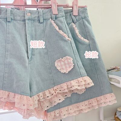 デニムボトムス脚長効果!スキニーデニムパンツ脚見せショートパンツ 春の新型の恋人格の薄い青色はやせていて足が細くて腰が高いワイドパンツの少女感が純粋に欲しいジーンズである 量産型 地雷系 衣装 撮影シ