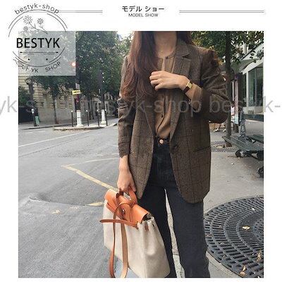 テーラード チェック柄 レディース ブレザー ジャケット 春 スーツジャケット アウター 秋 チェック柄スーツ レトロ カジュアルスーツ 通勤